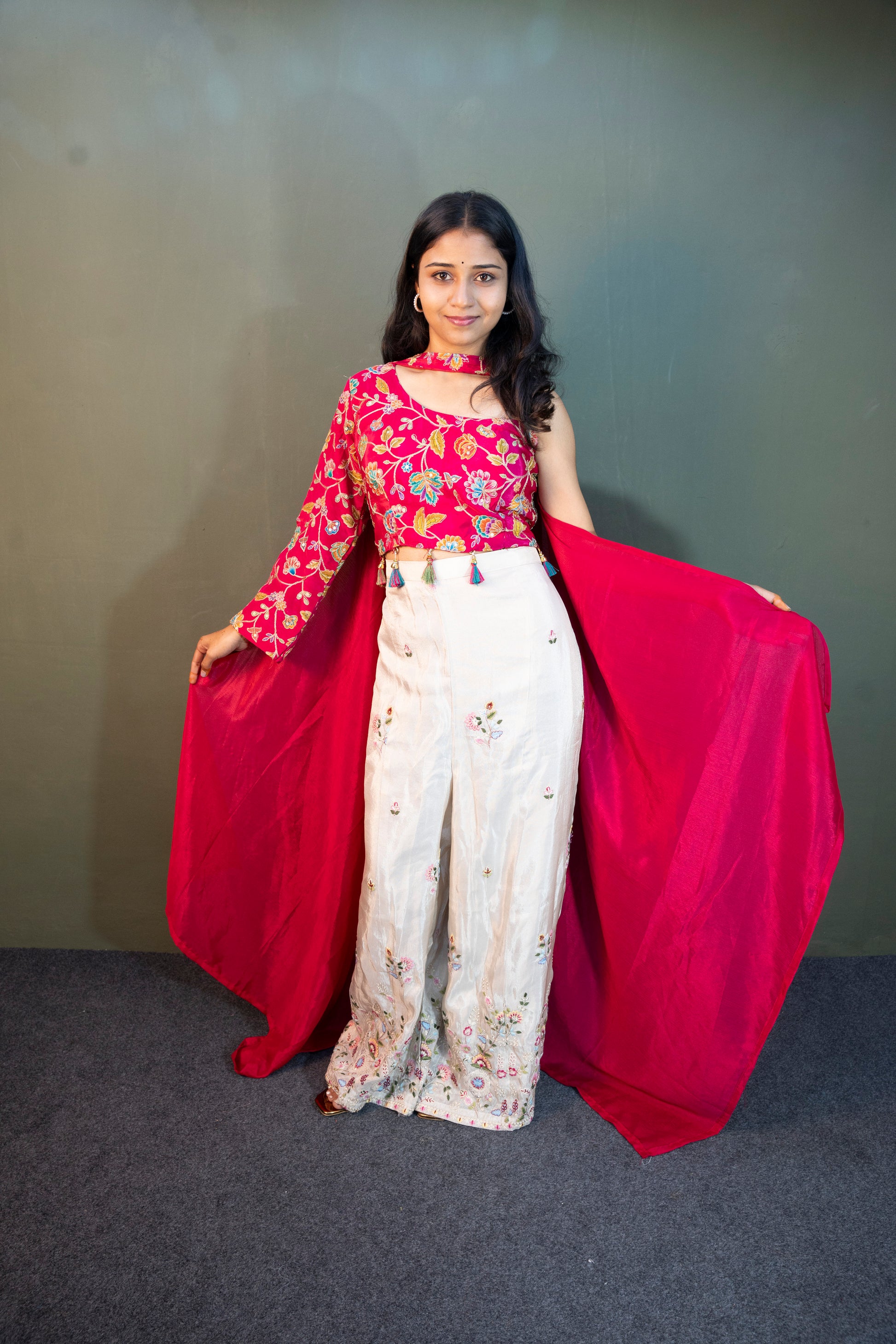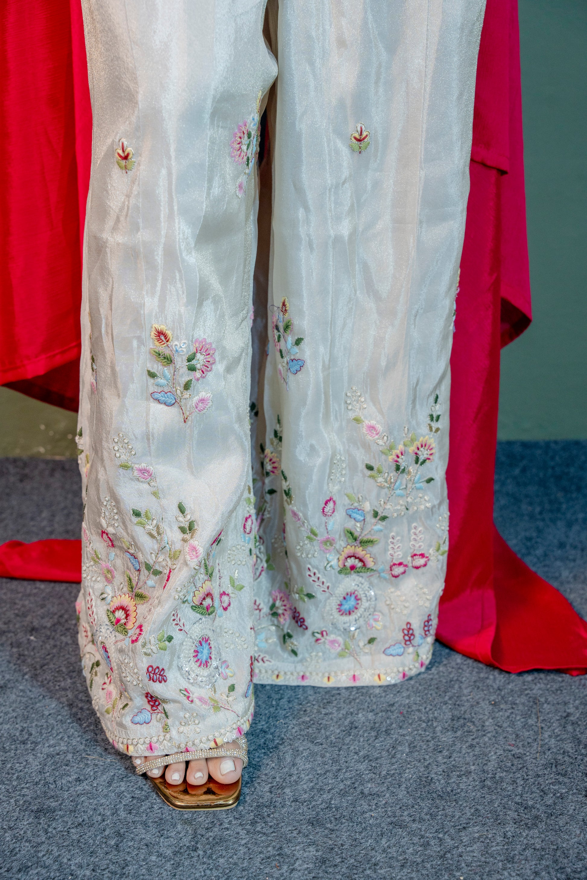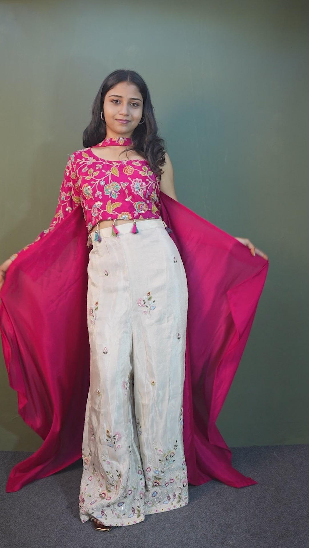 Embrace soft elegance with this Blush Harmony Pink & Off-White Indo-Western 3-Piece Set, beautifully detailed with piping hand work and delicate stone embellishments. Designed for festive occasions and special gatherings, this ensemble blends graceful colour tones with refined craftsmanship.