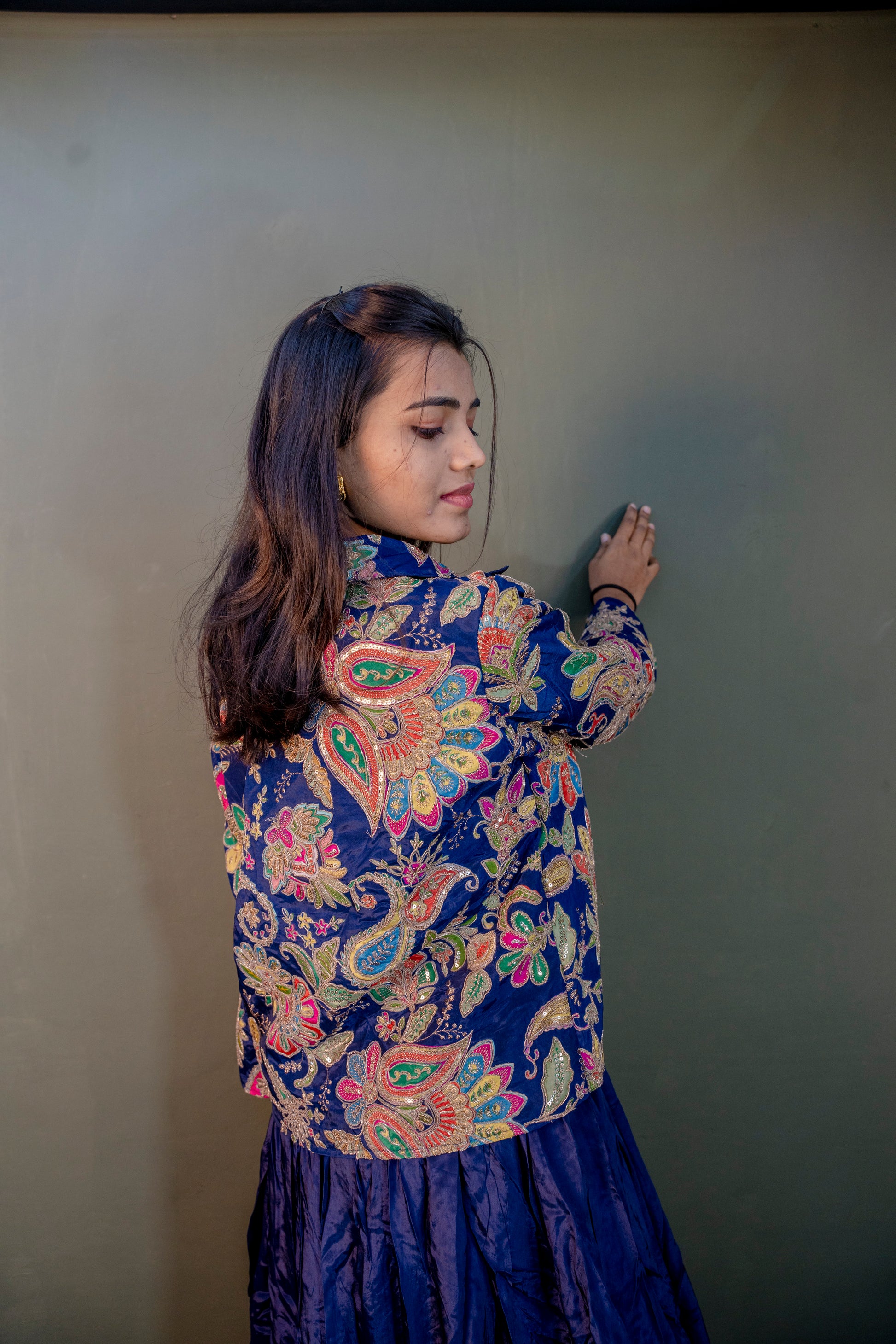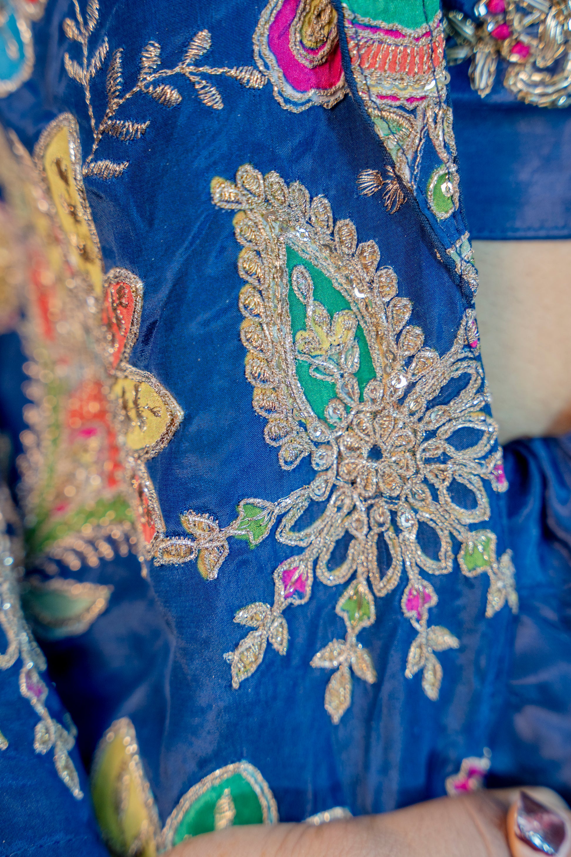 Elevate your occasion wear with this Opulent Blue Indo-Western 3-Piece Set, detailed with piping hand work complemented by elegant stone work. Designed for festive celebrations and special gatherings, this ensemble offers a perfect blend of traditional craftsmanship and contemporary style.